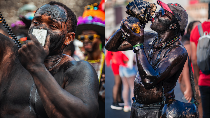 En Martinique et en Guadeloupe, le Nèg Gwo Siwo est recouvert d’un sirop épais, noir et luisant, fabriqué à partir de mélasse. Ce n’est pas un simple déguisement : c’est une transformation. Le corps devient sculpture, apparition, mémoire vivante. Le noir brillant évoque la canne, le sucre, la sueur, les nuits sans fin de l’habitation. Mais il évoque aussi la beauté, la puissance, l’inversion des rôles : celui qui était réduit à l’ombre devient figure centrale, imposante, indomptable.